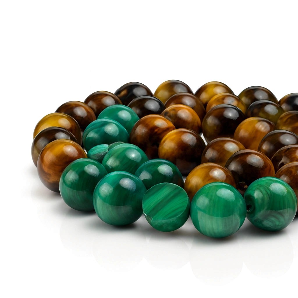 سبحتنا مصنوعة يدويا من حجر طبيعي عين النمر مع المالاكايت الاخضر الفاخر بجودة عالية مع حجر وامامة خشب ابانوس مموج طبيعي فاخر سبحة نادرة من تصميمنا مع توفر مقاسات مناسبة للاهداء الفاخر مع علبة جلد أخضر أنيقة