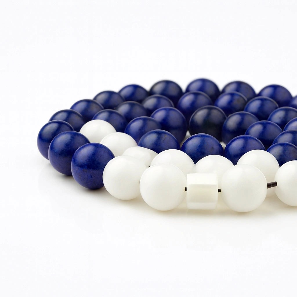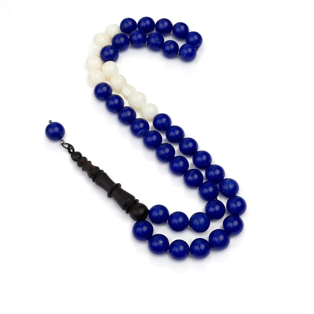 سبحتنا مصنوعة يدويا من حجر طبيعي لابيس ازرق عالي الجودة مع صدف ابيض سبحة وامامة خشب ابانوس فاخر سبحة من تصميمنا مع توفر مقاسات مناسبة للاهداء الفاخر مع علبة جلد أخضر أنيقة